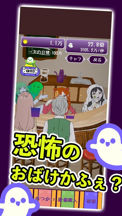 カフェを運営するクリッカー系放置ゲームです。