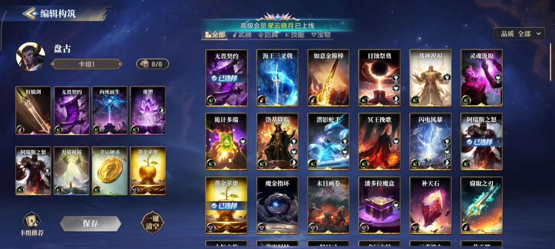 巅峰开服第一天就上了,发现其实上分英雄就那些,虽然构筑卡有需求,但是初始给的其实够用,看我图片我钻石就永夜抽了两发,钻石全攒着没抽神灵和构筑照样打。 先说说我对神灵的分类,我目前归类以下 1.高攻流,就是走力量高攻击力的,斩杀线较高,运气好的情况下两三刀带走对面,主要代表人物就是索尔,夸父,盘古 2.操作一波流,顾名思义,就是靠开局第一波或者第二波大量手牌打出爆发输出和连击,形成压制。爆发打