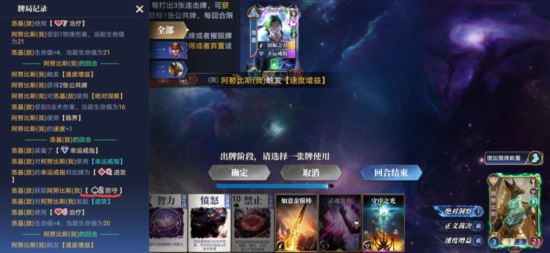 当偷了阿比努斯的牌时,如果忘了具体花色,可以点击左上角齿轮下方的时间,会弹出如图所示的操作记录框,里面有具体的花色。