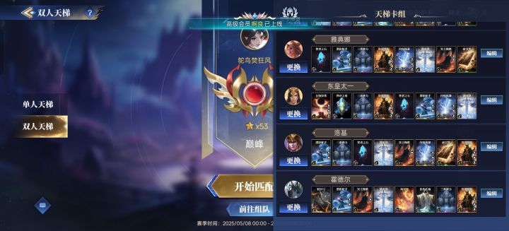 0氪两天巅峰双人模式,起号永夜活动3次十连抽海拉,金卡就合了张闪电风暴,偏速度流卡组,没有力量卡,防具卡也只有影步长袍能用,核心思路就是上智者之石,之后就上能使用的构筑卡快速叠属性,属性够洛基降临和潜影蛇手就可以打控场了。不能叠属性的时候建议是把构筑牌留手里,经常一波爆发打崩对面。 主要上分就是海拉了,你队友不玩那种抽象的肉盾英雄很好赢,洛基运气好可以开局扒光两个人,哈迪斯是必禁的,构筑齐全一波
