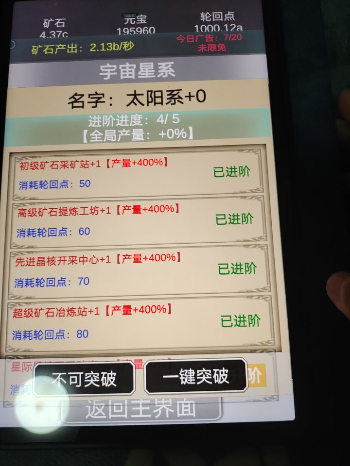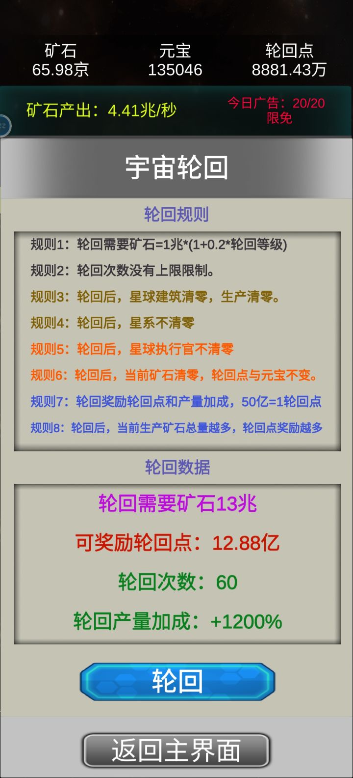 这个游戏离线收益只有一半,而且离线收益还最多只能8小时。还有轮回实在是太折磨人了,只能一次次轮回,玩了50多个小时,有40多个小时在轮回!