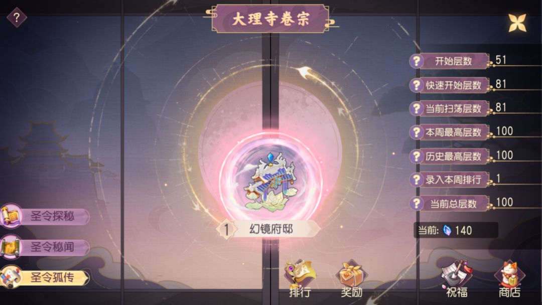 各位少主好,自从傩相浮屠版本更新后新增了大理寺玩法,为大家获得神赋又增添了一个新的途径,今天我们一起来看看大理寺中的圣令孤传模式。 圣令孤传是大理寺的“无尽模式”,具体玩法和圣灵探秘类似,但是有着最高200层的超长挑战过程。而与超高的层数相匹配的就是--丰厚的首通和每周奖励! 首通奖励 一共是7500神赋碎片、4个强化保护石、1个紫色神赋精元,还有最关键的1个随机橙色神魂!没错,橙色的神魂,这在开