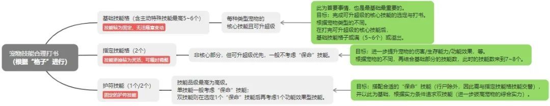 各位少主好!今天为大家带来的是关于宠物打书过程中,一个绝大部分玩家极易由于种种因素而做出让步的点:哪些技能打在哪里为更优解?——宠物在选择打书时,哪些技能建议分配在宠物技能栏的哪部分较为合适的思路。 本期攻略以全魂三星珍兽为例,目前宠物技能数上限为9个/10个,内容以理想化的方式进行,实际存在相当大难度,仅作为一个指导性思路分享。 由于宠物技能分为三部分: 基础技能格5个(固定技能,无法灵活更改)