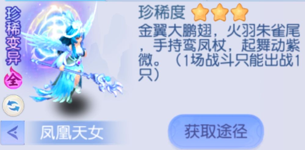 各位少主好!说到单法宠物相信很多玩家首先想起的就是月流萤,其实还有一只超强的三星单法被大家遗忘了,今天就让我们一起来看一看「凤凰天女」的培养参考方案。 宠物获取 凤凰天女是唯一一只通过洗炼就可以达到六技能的单法宠物!千万不要小看只多了一个技能,一个技能足以让这只宠物拥有更多的变化。 除了妖龙宝图之外,每周晚上活动有概率获得它的三星魂,还有其他的一下获取三星魂途径,收集后可召唤。 主动技能-凤炎 主