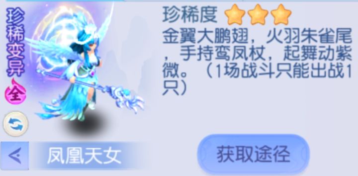 各位少主晚上好!说到单法宠物相信很多玩家首先想起的就是月流萤,其实还有一只超强的三星单法被大家遗忘了,今天就让我们一起来看一看「凤凰天女」的培养参考方案。凤凰天女是唯一一只通过洗炼就可以达到六技能的单法宠物!千万不要小看只多了一个技能,一个技能足以让这只宠物拥有更多的变化。除了妖龙宝图之外,每周晚上活动有概率获得它的三星魂,还有其他的一下获取三星魂途径,收集后可召唤。主动技能-凤炎:非常高