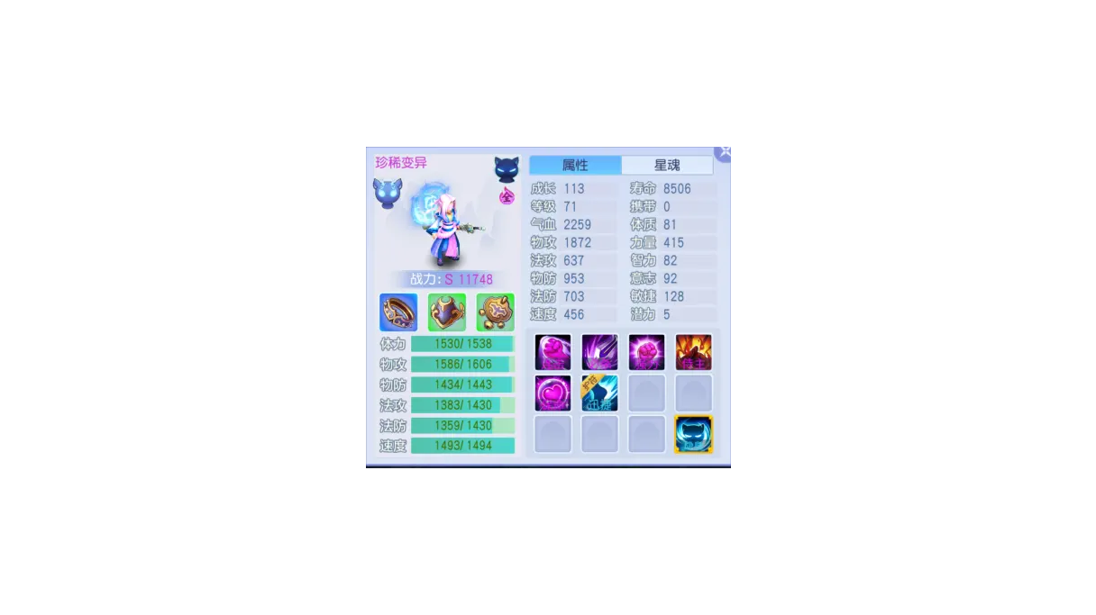各位少主好!今天我们一起来聊聊桃花源记里完美的平民辅助三星——思瑶!无论版本怎么变,辅助宠物对竞技玩家都超重要!氪金玩家能轻松搭辅助阵容,普通玩家选思瑶准没错!这只宠物签到就能轻松免费入手,虽易得,但实战效果顶尖!变异五技能,最高可达7技能(不含护符)。成长至少113,追求体质和速度全满。这只宠物因技能特性,多时间隐身,双防不太重要。常规打书双生 + 超级强壮 + 超级铁骨 + 超级守护