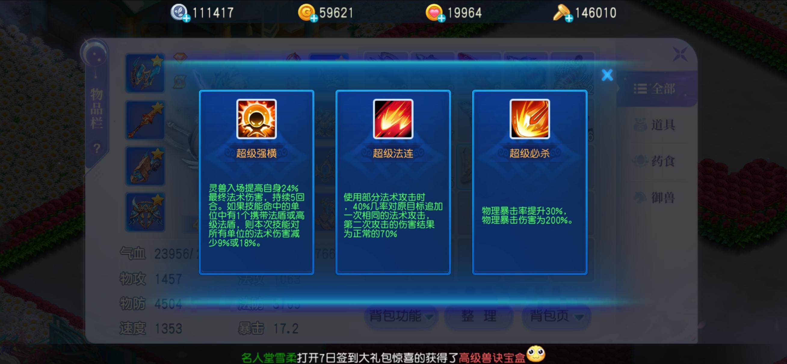 各位少主好!今天我们一起来聊聊当前版本最强群法宠物——枪仙!为啥它能在群法式微的时代脱颖而出?靠颜值?不不,靠的是硬核实力!我们来剖析它的主动技能——漩涡,功能丰富到离谱:回合结束扣血,虽少但克制保命技能。概率给目标加伤害提升,削弱对方生存。目标反击时概率触发一滴血,曾经有镇国斩龙诀连续触发两次,瞬间秒杀!目标死亡后自身恢复气血,生存能力直线飙升!枪仙能输出能生存,这些功能集于一身,想