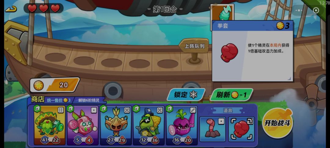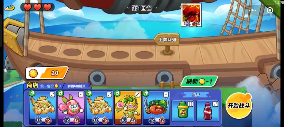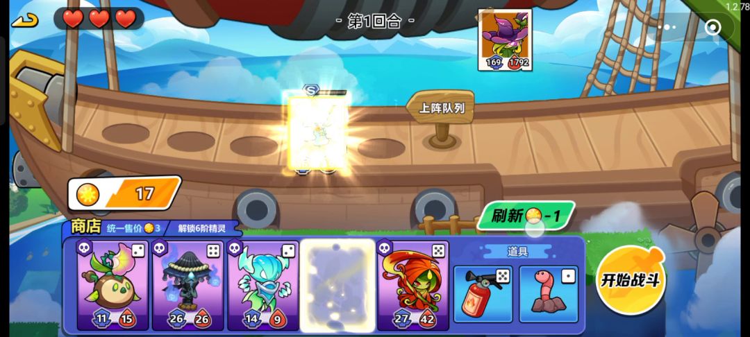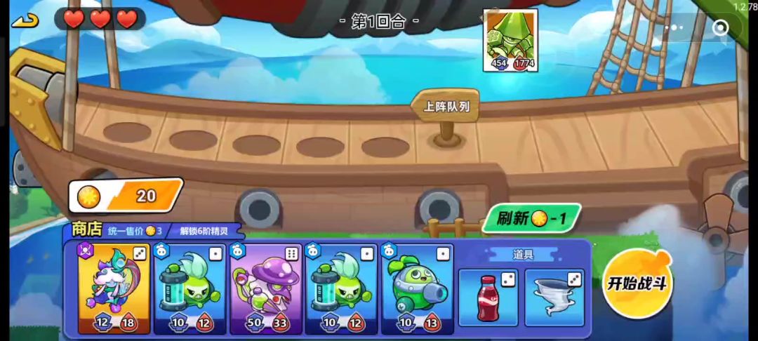 阵容:种子 模仿果 鸭梨将军 杨桃(五级) ——前期,后期随意 主c:杨桃(尽量追s) 第一局每张牌都上一张,运气好可以多追一张杨桃,保证卡槽里面的牌尽量都是高攻血,道具记得卡拳套。第二局让杨桃去s,没有s也没关系,多卡高攻血牌就行。第四局就是卖掉种子,还是老样子,卖掉之前1和3号位换一下,然后给杨桃吃拳套。后面随便补就行了。因为都是发的不氪金玩法,投入的经历跟时间可能会多一些,多试几次就可以了。