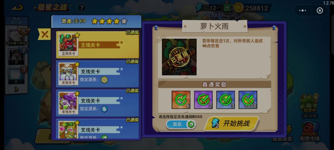 1.Boss特点:高攻血,随机伤害。 2.流派选择:亡灵,中立,菜系以及果系适合。 3.打法:此次展示菜系打法,本人萝卜,紫甘蓝,西兰长老均4星,罐头机器3星。重点是每回合利用上下西兰长老的方式重置西兰长老技能,使队伍获得高加成。最后一回合将攻血最高的放第一位,同时加一个果壳,可提高通关率。 4.租借角色:4星或者5星西兰长老,低星也可以。 5.注:没有鸢尾花可以用其他菜系替代,或者直接不上鸢尾花
