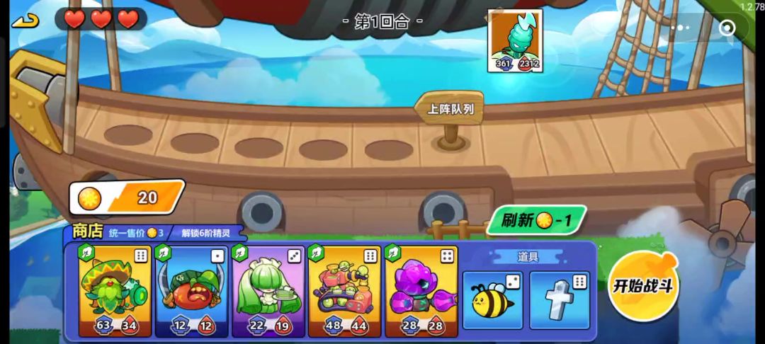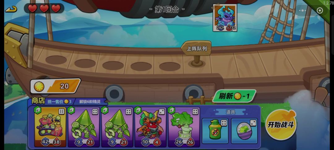 阵容:种子 模仿果 鸭梨将军 杨桃(五级) ——前期,后期随意 主c:杨桃(尽量追s) 第一局每张牌都上一张,运气好可以多追一张杨桃,保证卡槽里面的牌尽量都是高攻血,道具记得卡拳套。第二局让杨桃去s,没有s也没关系,多卡高攻血牌就行。第四局就是卖掉种子,还是老样子,卖掉之前1和3号位换一下,然后给杨桃吃拳套。后面随便补就行了。因为都是发的不氪金玩法,投入的经历跟时间可能会多一些,多试几次就可以了。