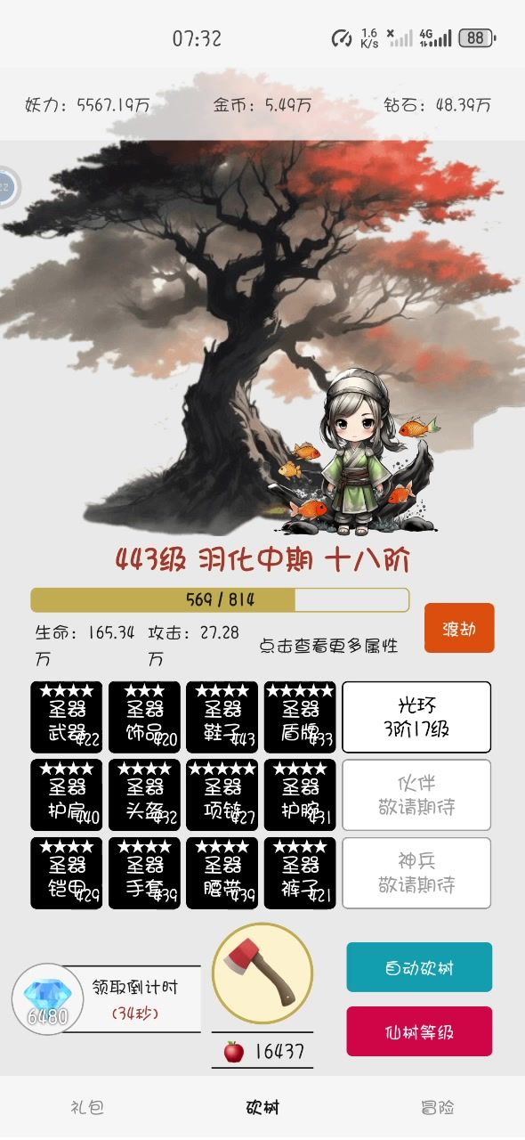 一款可以一口气通关的无广告无氪金版本的砍树修仙游戏!