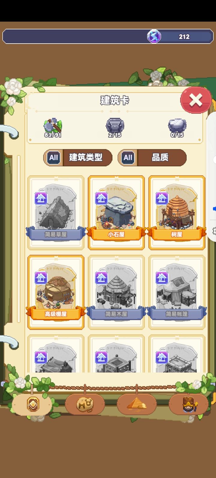 大概的游戏流程就是,开局框框建房子,等点数,迁徙重开,建房子,等点数,迁徙重开……