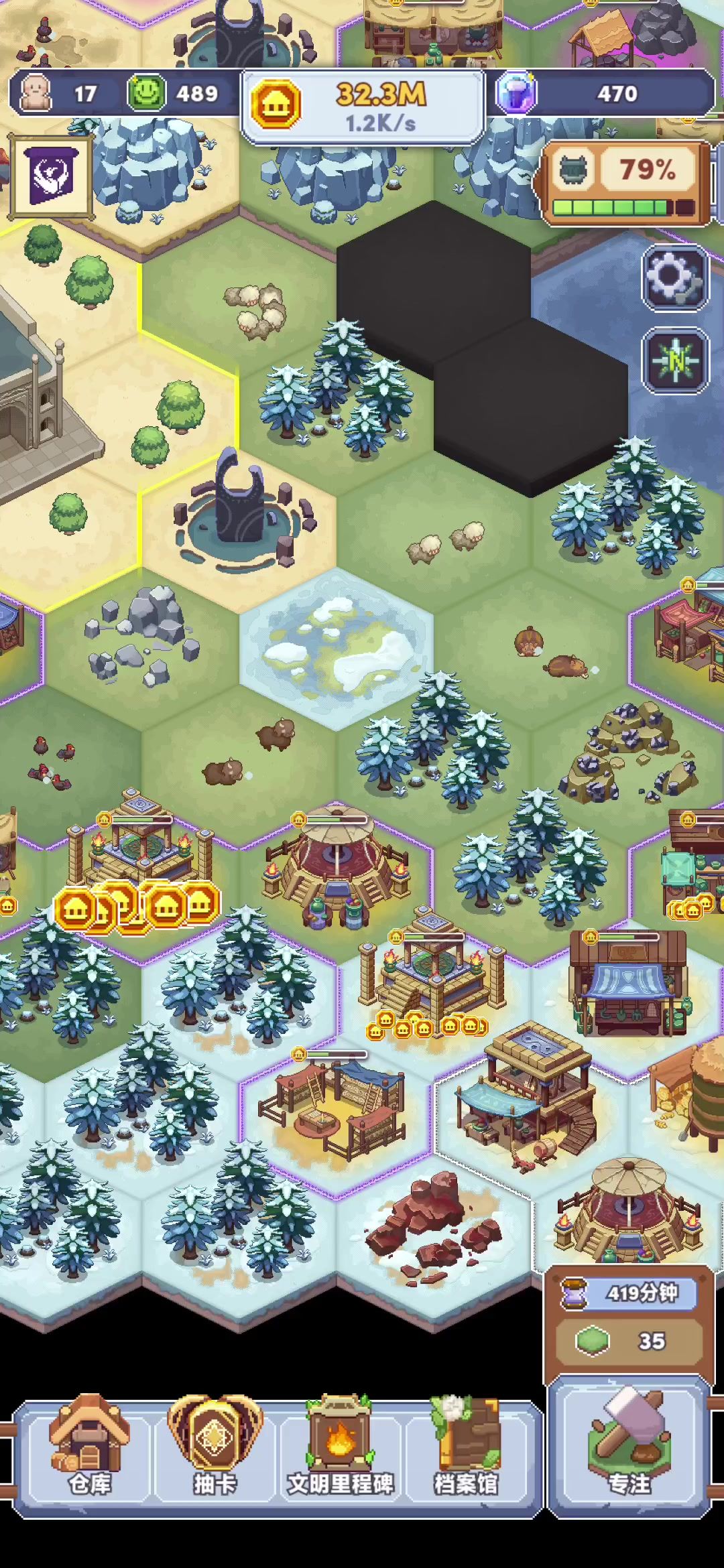刷发展点那叫一个火箭般的快啊,不过也是真的难抽到,金墓园应该也能达到这种效果,然而我没有,主c就这俩神庙,还得继续刷关刷钻石#专注与文明TapTap测试版