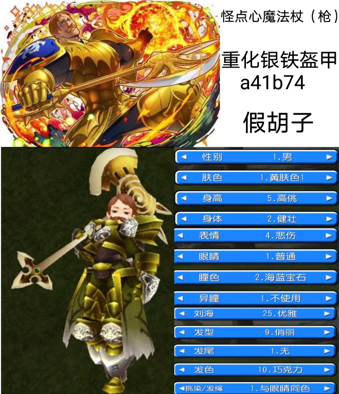 最近,嗯……就很喜欢奥丁嘛,有点手痒,看上去也不是很难的亚子,于是自己尝试了一下 捏脸: 1.身高:娇小 2.表情:悲伤(因为想要细长一些的眼睛) 3.眼睛:闪亮+黄水晶 4.头发:名字很难记住的刘海+长发 5.衣服:信天翁之服重化81A1B47C 6.追加:眼罩(出自时装"异国军服”) 帽子(出自时装“魔法师”)(更倾向破晓帽但是穿膜就很烦) 不是很像,但是很开心✧٩(ˊωˋ*)و✧