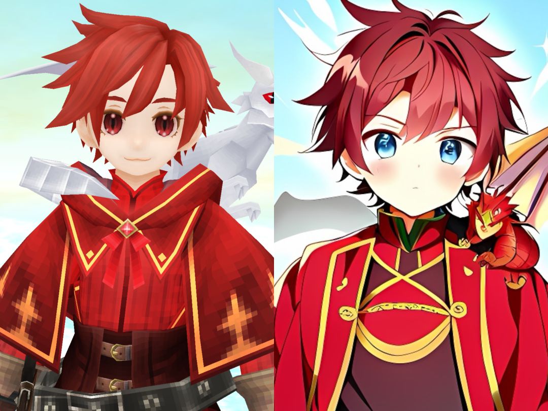 先放张对比再放张AI画的全图吧( 肩膀那条龙笑死我了,我加的词条是“肩膀上有龙”结果AI画了个中国龙,可能因为衣服是国风的吧hhh 不能细看,AI把眼睛画崩了 头发质感感觉很奇怪 词条加了个运动服,结果给我整了个露肩运动服hhhhh,衣服的褶皱画的好 这个塑料般的恶魔角,嗯,可爱()这个衣服领子往外翻变成披风的设计我很喜欢 AI不会画手是真的( 还有不加表情词条基本都是傲娇脸,以及每张都有腮红,还