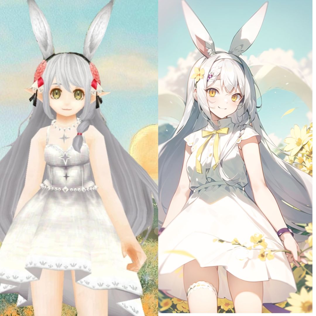 配方: 瞳色:蓝宝石 身高:娇小 衣服:皮革软甲(白a/c,模拟炎牛礼服) 追加:猫耳(黑a/c)猫尾(黑a/c) 大剑:白露(模拟师傅剑,武器可部分考虑白染) 猫尾可替换为旧披风,旧披风可考虑白染或深蓝染,效果应该更好 至于cos模拟黑猫斗衣那一套的话,暂时考虑用神枪手服+披风,不过现在不是活动期很难搞到,搞到的话会再发一帖,诸位大佬也请多提点建议