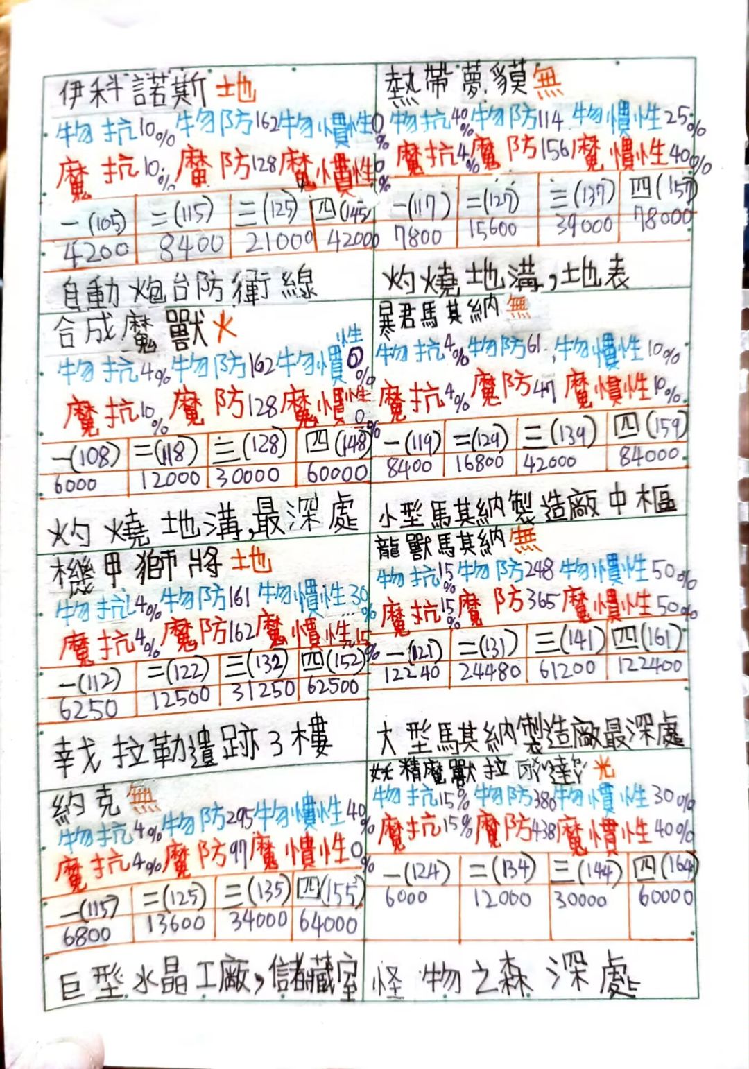[代发]托拉姆防御表,经验表