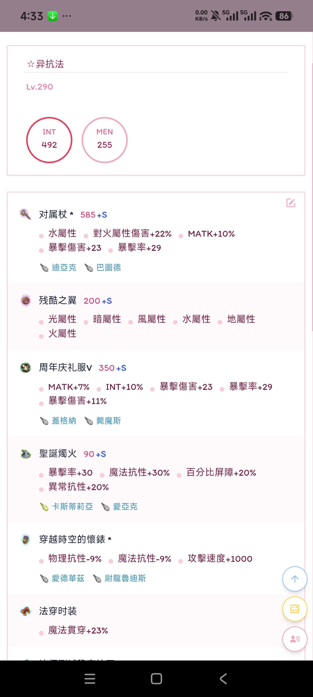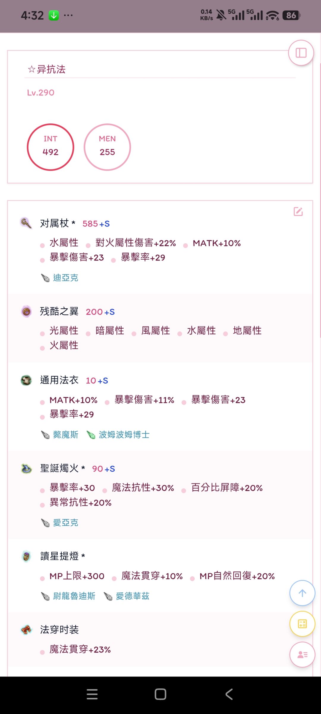 异抗75+20=95,差5点可以时装上补,不过最好吃色拉酱茄子无损+5 结界削弱后基本要卡3000-4000血防百分比,所以圣诞烛火+30魔抗大部分情况下舒服很多。 哥特也可以用,反正时装上20异抗≈20法穿,烛火在输出层面只比哥特少7暴击,不过多出30魔抗坦度好很多,低压局少吃魔抗多一个输出料理绝对是赚的 通用衣有钱比较推荐这种炸魔的周年庆 10%智力大幅提升女神伤害 防御多三百多也有将近4%的