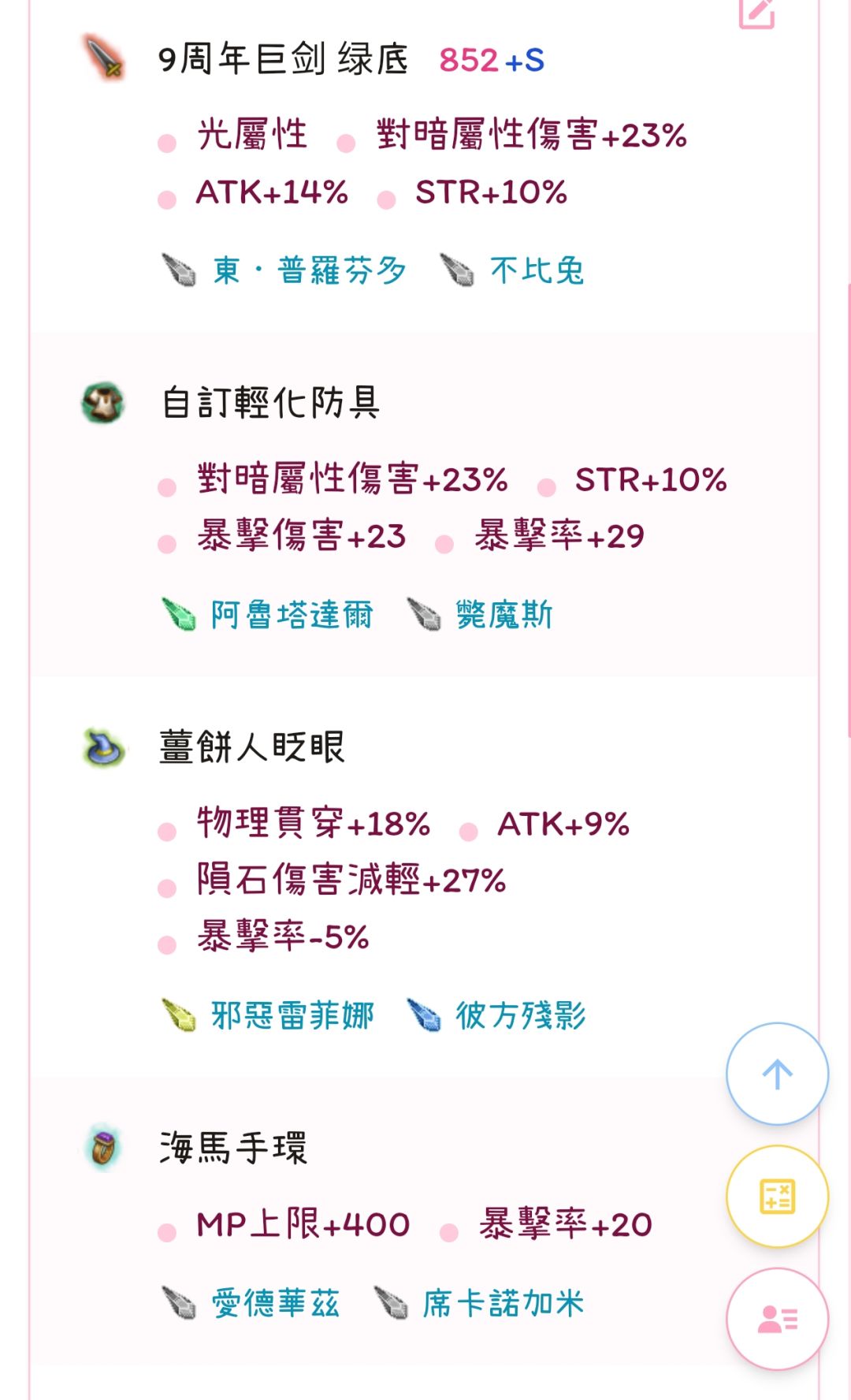 有优化或者需求发楼里就行,不定期增补 默认0熟练度 ,满素材理解,包含退mp自回 通用武器 105潜力(单手/弓/拔刀/枪/魔导) 116潜力 (弩/拳/杖/大剑) 对属武器 105潜力(单手/弓/拔刀/枪/魔导) 116潜力 (弩/拳/杖/大剑) 通用衣 冒险者服装(63) 欺诈套装(114) 对属衣 冒险者服装(63) 欺诈套装 联合/再联合专区(无负魔攻) 通用衣 冒险者服装 欺诈套装 对属