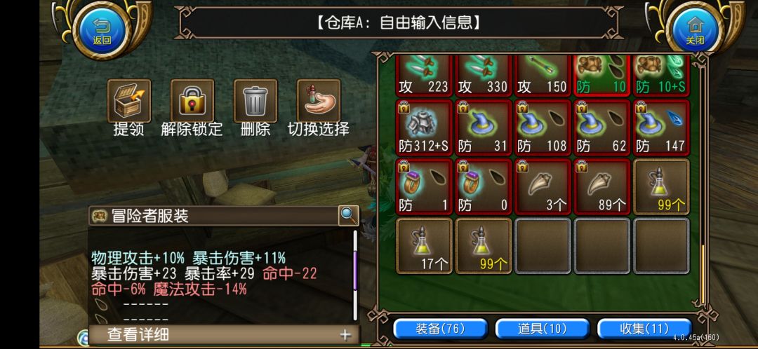 ✩ 主手武器 装备初始潜力值|98 基础锻造熟练度|260 ✩ 最终结果 水属性|对火属性伤害+23%|STR+10%|ATK+12%|HP自然回复-26|MP自然回复-14|DEF-13%|回避-22 ✩ 了解素材技能等級 金属 Lv.10|兽品 Lv.10|木材 Lv.10|布料 Lv.10|药品 Lv.10|魔素 Lv.10 ✩ 素材耗量 金属 121711|兽品 32139|木材 3151