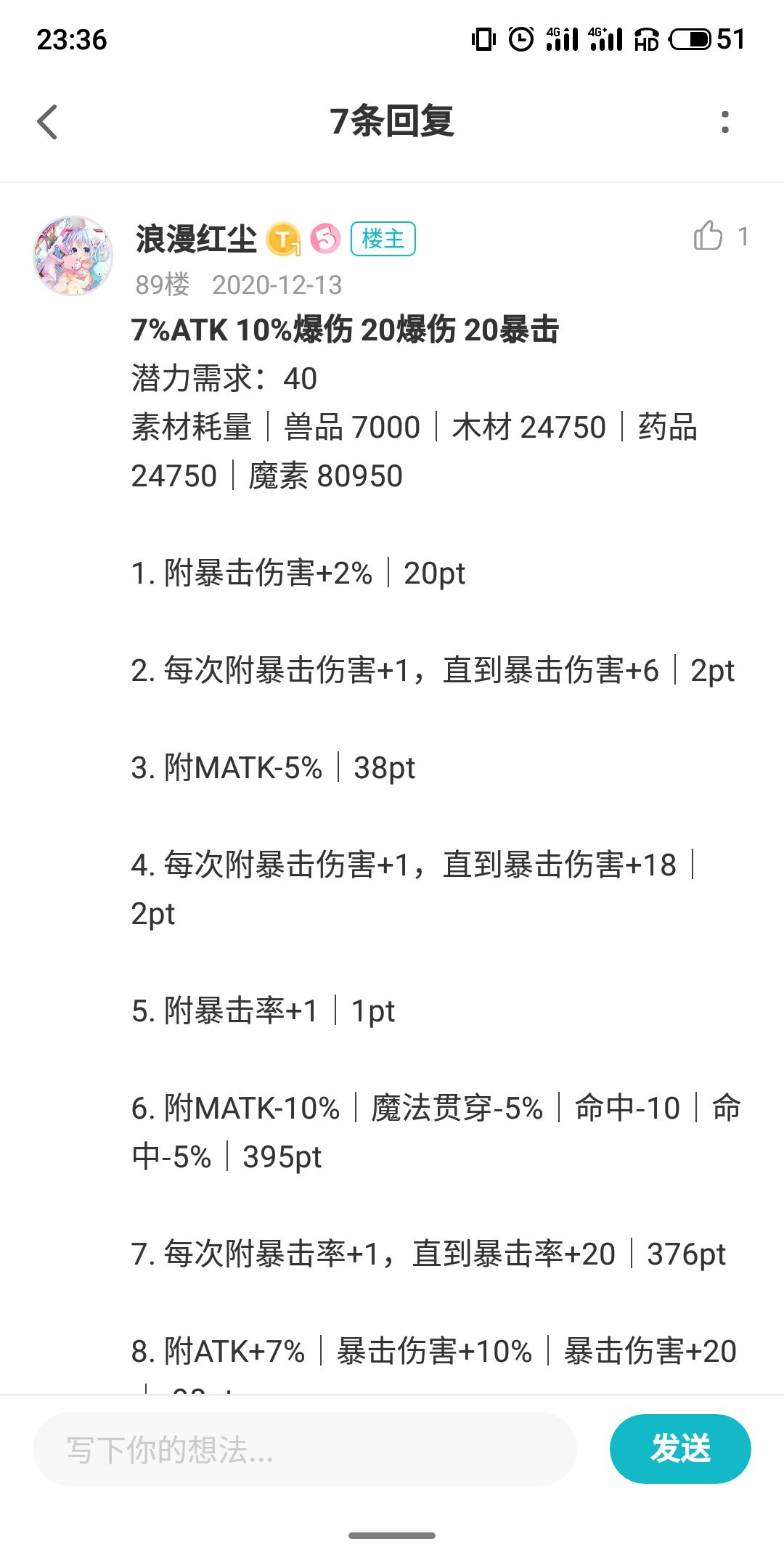 本萌新附魔的时候按照这个公式给一把杖做的附魔 瞅瞅这成功率,妥妥的 结果接了个电话,回来就懵了,直接把int%附成了matk% 然后我算了一下,更懵了 这是要我老命啊,我77%的对属都能炸8件的,70成功率不是直接废了 然后我被迫用了十分钟研究狮虎给我发的公式 然后发现,我可以换一种附魔方法 (潜力实际是63,我记错成了62,之前想的反正稳附没在意) 就这样,萌新附魔师被迫成长了QAQ