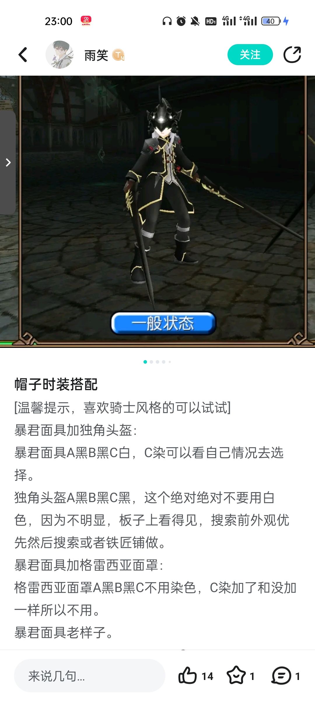 之前叫雨笑的号找不回密码忘了,这个搞搞 [温馨提示,喜欢骑士风格的可以试试] 暴君面具加独角头盔: 暴君面具A黑B黑C白,C染可以看自己情况去选择。 独角头盔A黑B黑C黑,这个绝对绝对不要用白色,因为不明显,板子上看得见,搜索前外观优先然后搜索或者铁匠铺做。 暴君面具加格雷西亚面罩: 格雷西亚面罩A黑B黑C不用染色,C染加了和没加一样所以不用。 暴君面具老样 ~~~~~~~~~~~~~~~~ 暴君