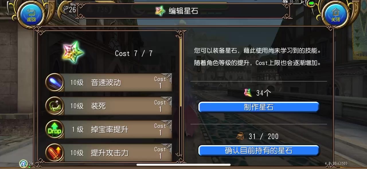 PS:增加了改版爆能,从以前的8层变成4层,非常契合叠层用的冲剑,而双重,可以使它的爆伤加成同步共享给魔法技能树,这就是魔炮伤害攀升的原因,但也新增了限制,魔法炮在100%层之后充能减半,算是一个小削弱,联合的话,强劲,总之就是这样,起号需谨慎,这个职业并非主流! |总共使用了361技能点数。 |星石总共提供了36技能点数。 星石清单 |威力攻击 Lv.10 |剑术要领 Lv.10 |魔力充填 L