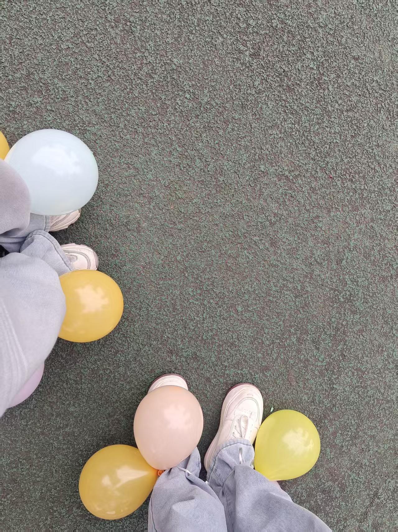 早上起来的小孩有踩气球游戏玩~