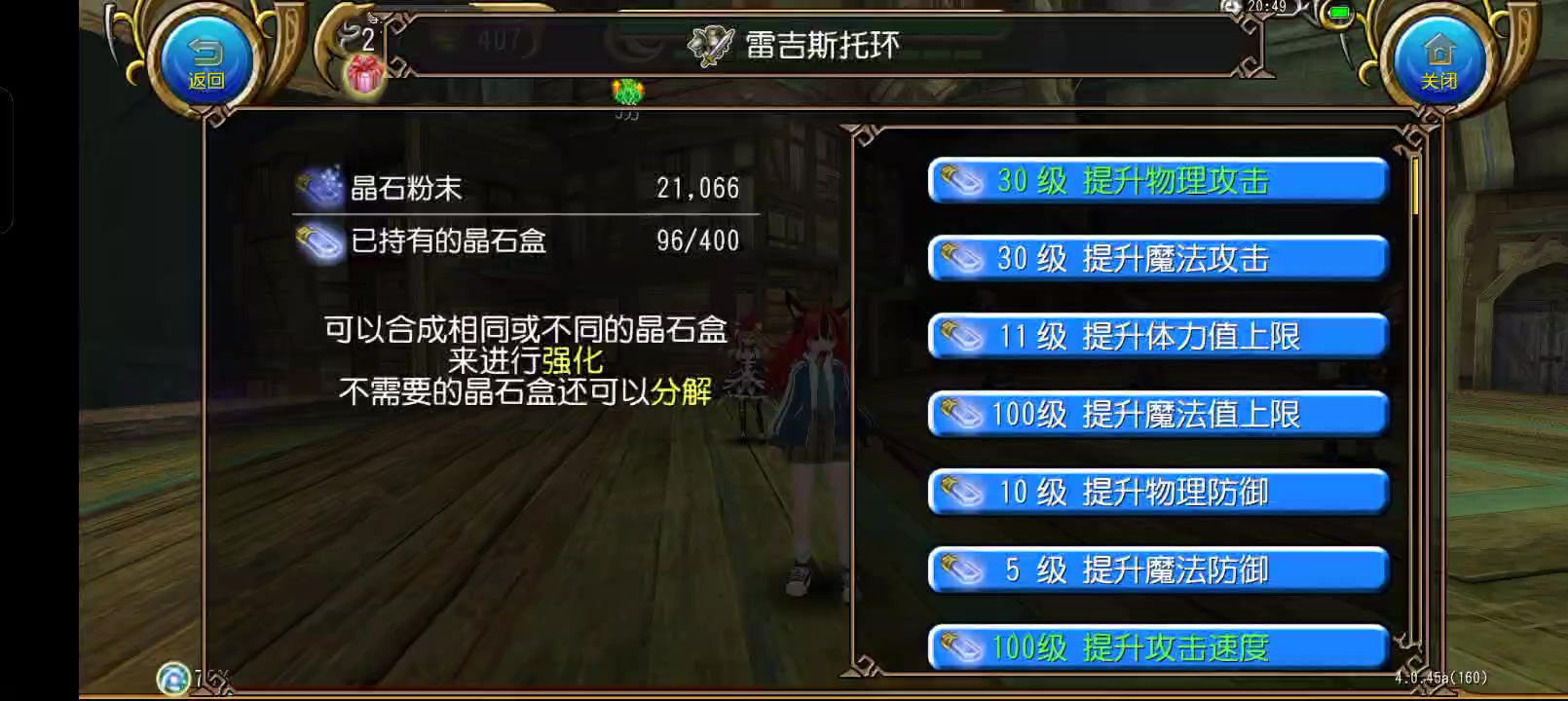 ✩ 身体防具 装备初始潜力值|116 基础锻造熟练度|260 ✩ 最终结果 对水属性伤害+22%|暴击伤害+11%|STR+10%|暴击伤害+22|命中-20|命中-6%|MATK-14%|ATK-14% ✩ 了解素材技能等級 金属 Lv.5|兽品 Lv.10|木材 Lv.10|布料 Lv.10|药品 Lv.10|魔素 Lv.0 ✩ 素材耗量 金属 0|兽品 43462|木材 31511|布料 0