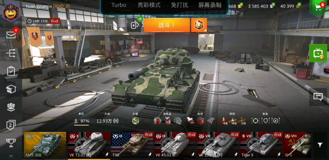 奥利给干就完了!机动OK,炮塔转向,车体转向很弱,容易被高机动的MT,LT绕杀,加了穿深银币弹310,金币弹394,HE高爆弹99,6゜俯角。装甲勉强可靠,炮塔头包弱点。