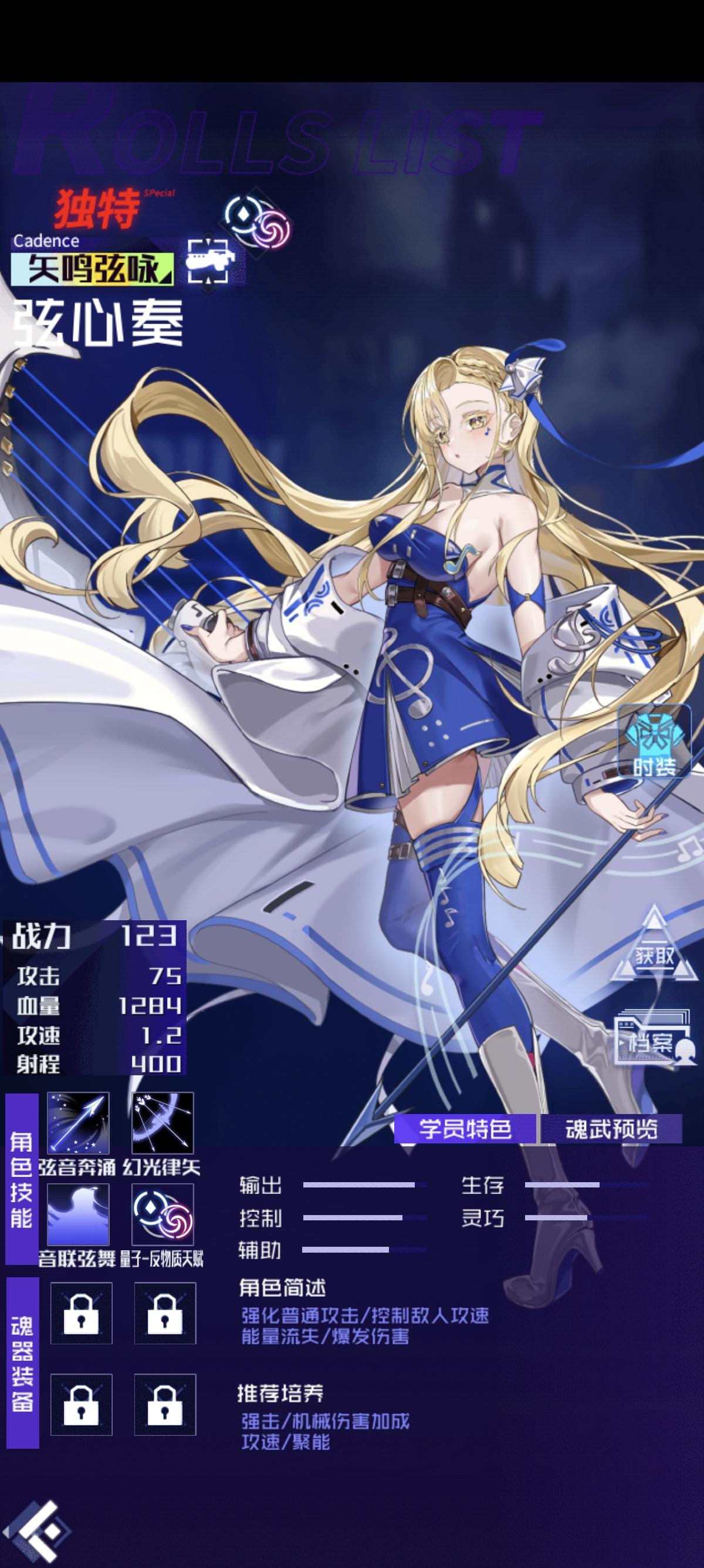 亲爱的班长大人新学员【矢鸣弦咏·弦心奏】即将上线!“你就是班长?希望你不会让我感到无趣。 ”▼学院档案录入///奏出身于欧西利亚联邦的名门,因音芽三人的演奏而被吸引。如同选择一场新奇的戏剧或收藏一件新古董般,凭一时兴起加入了魂器学院。她自带的家传魂器与学院技术格格不入,她也乐得如此,以此彰显自己的与众不同。