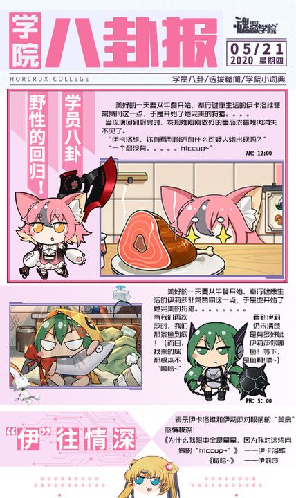 亲爱的班长~明天,6月20日,是皮卡的生日。不同于姐姐奥德莉的严谨与认真,充满任性的妹妹皮卡多少有些难以相处。不过熟悉她的同学们当然知道,皮卡的傲娇早就不是一天两天了~傲娇的皮卡正在试穿学院为她准备的生日服饰[闪电飞星],让我们先来围观下图透叭。为了给妹妹制作生日惊喜的奥德莉在生日前的某天,悄悄的溜进了实验室。而皮卡为了让姐姐看到自己成长的一面,向姐姐承诺自己一个人也是没问题的!就这