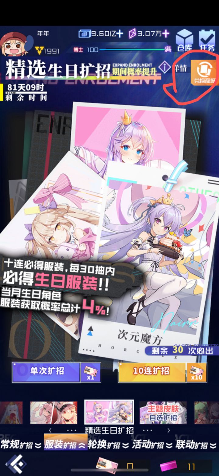 生日服装扩招特殊点数兑换商城出bug了,进去不是服装兑换,麻烦看到修复下,还几百点呢
