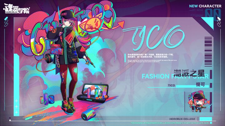 亲爱的班长大人~全新角色【潮派之星-提可】即将上线——你也是我的粉丝吗?哦?不是啊,那就自我介绍一下吧,我叫提可,是一名涂鸦艺术家,今后请多多指教。 背景故事来自巴哈姆特的前卫艺术家,经常出没于巴哈姆特的街头巷尾,在墙壁上涂涂画画,其中以色彩绚丽的涂鸦和立体画为主。作为混乱地区巴哈姆特中小有名气的艺术家,提可在当地自然也是被个别心怀不轨的人盯上过,但巴哈姆特的居民们会自发地为提可提供保护,