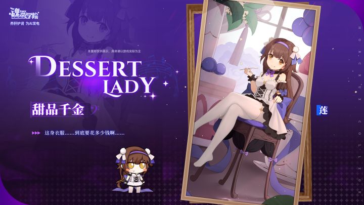 亲爱的班长大人! 学员【咫度天衡-莲】异色皮肤【甜品千金】将于周年庆版本限时上架!“这身衣服……到底要花多少钱啊……” 作为有着很强责任心的学生会会计,或许该把衣服的吊牌剪去在给她。