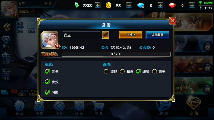 第一次战斗1V1对决,这是Moba?等待抽卡的到来瞬间明白这是卡牌嘛。继续战斗,战力不强失败了,嗯提升战力去,升级、进阶、圣器、装备!这就是ARPG的融合,这就是创新?抄袭好不好?升一升战一战看看是什么鬼。紧接着替换了英雄发现升级、装备这些都没掉,感觉有点不对,再去看看卡牌也没喂卡. 阵位培养不同进阶和镶嵌不同圣器,使用不同英雄对对战也会有很大影响,貌似有点不同呀! 多么想一场胜利呀,可惜还是