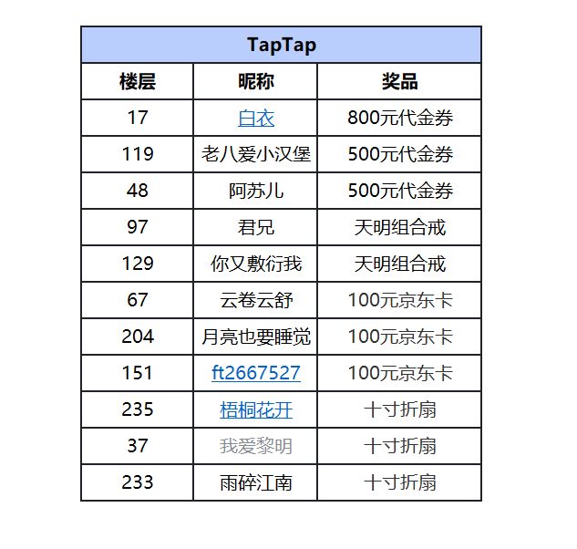 各位指挥官们,粽子节过得肿么样? 都去哪里浪了呢~ 指挥官们久等了,实物奖励终于到啦,现在公布所有活动的中奖名单。 请各位获奖指挥官添加QQ:2410055166。备注您的TapTap昵称。 与您取得联系后,我们将在第一时间将实物奖励邮寄出去~请各位指挥官耐心等待~ 活动一:中奖名单: 日天大大、雪与火、小七 、论魔性的萌性、YL、crown clown、♪微笑.掩盖丶 恭喜以上7名指挥官每人获