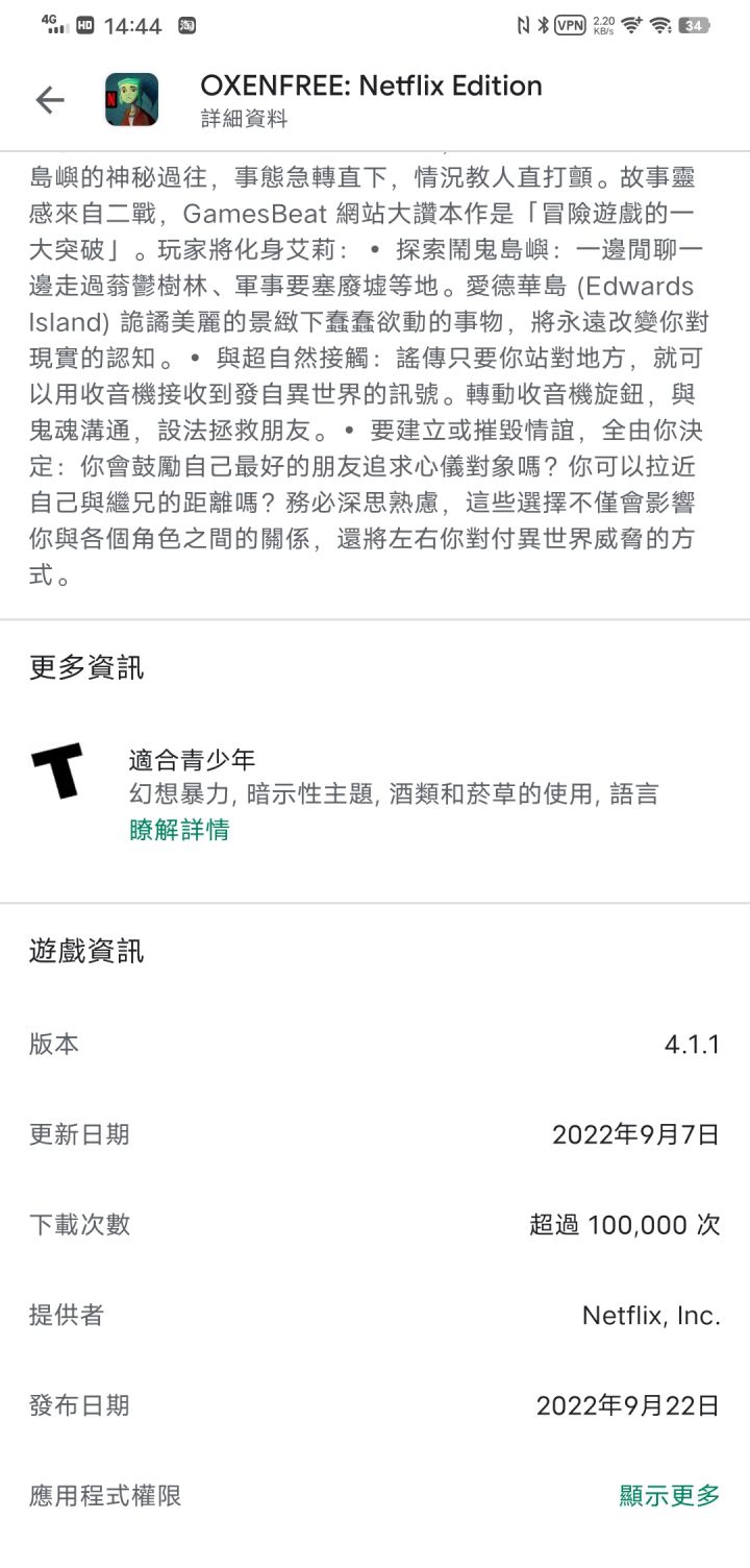 网飞去年收购oxenfree开发商后,今年9月22日重新在谷歌上架了oxenfree,游戏已经自带官方中文,简繁都有,游戏免费,前提是你有个网飞帐号登陆进去就可以了。