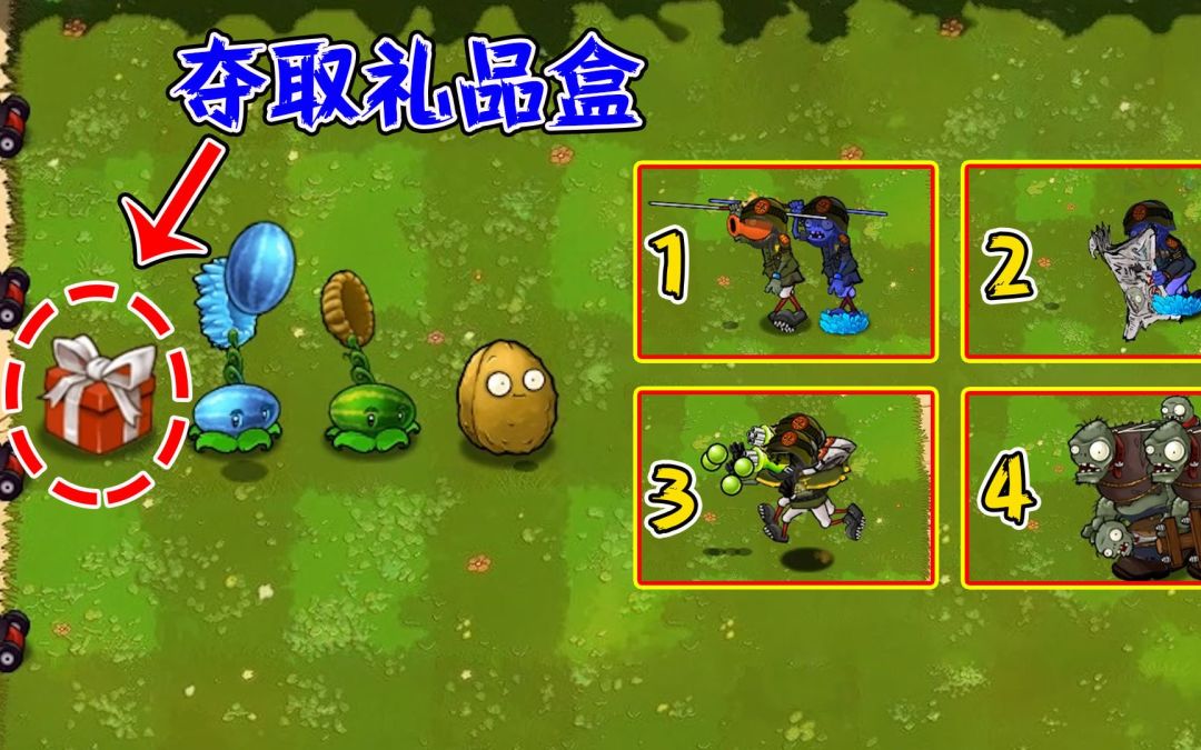 植物大战僵尸:当4组僵尸小队进攻,哪一组能抢走礼品盒?