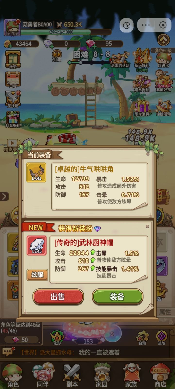 看到这简陋的画面...经典的砍树玩法...你的第一感觉肯定和我一样,这又是个割一把就跑的快餐小游戏,冒险大作战在国内确实不火,但如果你经常关注海外手游榜单,你一定见过他的另一个名字——“菇勇者传说”。菇勇者传说在过去半年里一直都是海外手游榜单的常客,巅峰时期的月海外流水超过6亿,超过了当月的原神和崩铁。作为苦砍树游戏广告久矣的国内玩家,我决定入坑试试,看看这砍树游戏凭什么赚那么多。于是我在两个平