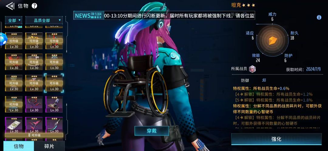 需要抽到一个坦克信物,可以增加碎片的产量,通过裂变已经满星的紫色战员获得其碎片,然后分解碎片获得心智碎片,有坦克信物时1万个蓝色碎片加500个数据线就可以得到6000心智币,努努力一周白嫖一个眼镜