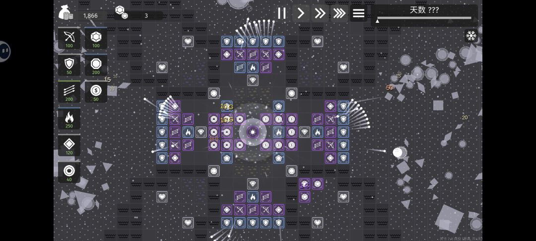 嗯这本来正儿八经玩了半天。后来发现这样就可以通关了。就全部用炮,重点就是卡他那个。水晶的时间。紫水晶一共可以发生三次(冲击波)? 钱:最后留点钱买(炸弹)和(寒冰炸弹)卡一下时间就可以极限过了。