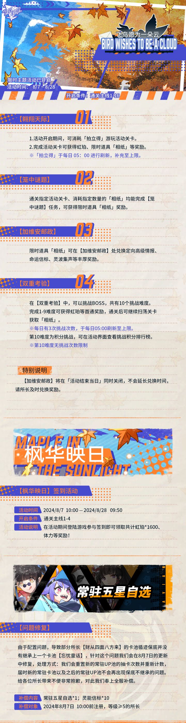《飞跃虹镜》8月7日停服更新以及自选补偿公告