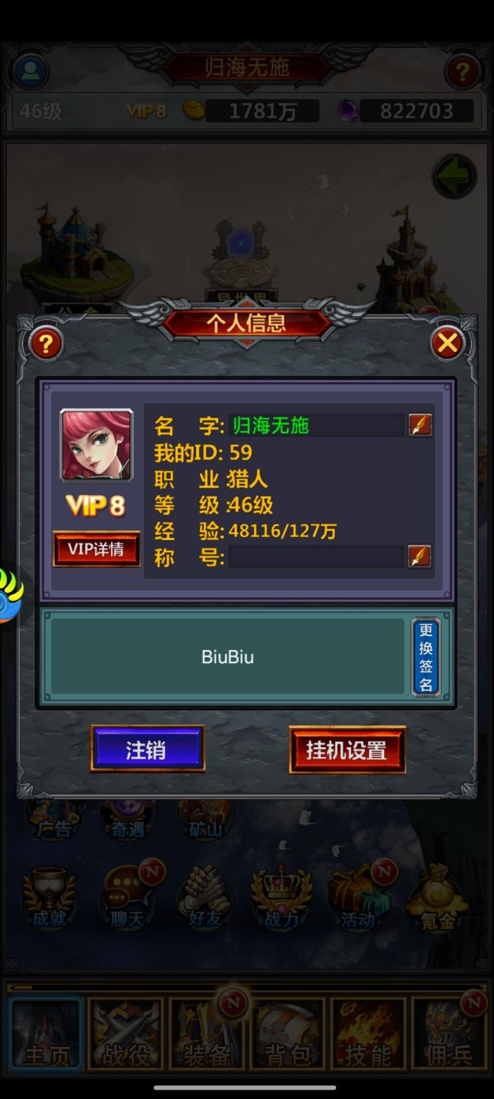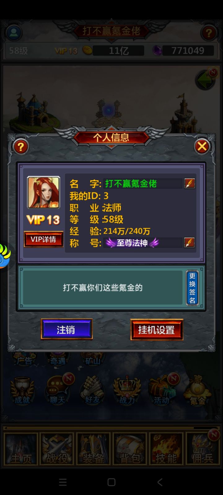 【活动奖励】幸运奖励50名,每人可以获得1张68奖励券!【活动时间】12月22日00:00——12月28日23:59分活动期间,各位小伙伴前往游戏中,截图游戏里的角色ID界面并将截图发在评论区并附上自己所属的游戏区服,即为参与成功。活动结束后,我们将随机抽取50名幸运玩家,发放活动奖励。游戏id截图获取方法:1、进入游戏;2、点击左上角角色名;3、将角色ID界面截图,并在评论区发