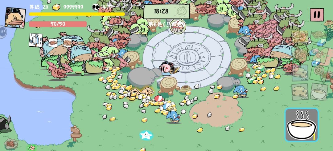 这游戏 选到 三秒不动加金币 金币越多伤害越高 伤害越高武器越大 找个地方卡怪卡个三四分钟出来就无敌了不是(两千万金币不够全部强化满[表情_狗头])