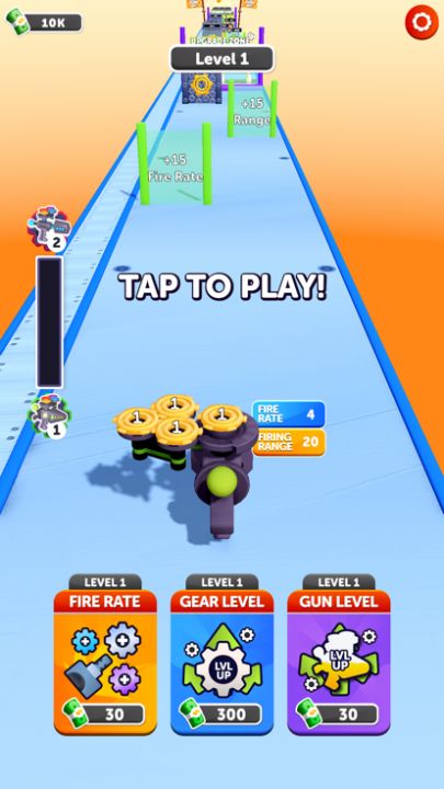 Get your gun and upgrade it! Shoot the gears, create your best gun and have fun!