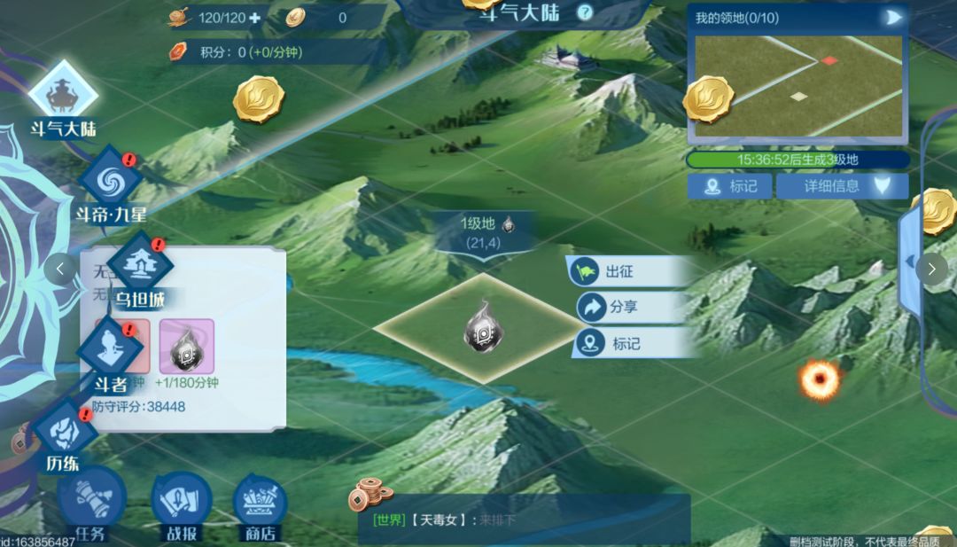 斗气大陆是《斗破苍穹:巅峰对决》中的SLG玩法。斗者们将以盟会的形式,在这片资源丰厚的大陆上占领地盘、获取收益。关于该玩法的具体规则及奖励,本篇攻略将为大家详细解读。 玩法介绍 斗气大陆由无数个相同大小的地块共同组合而成。玩法开放期间,斗者所在的盟会将被随机分配到大陆的某片地块,所有隶属于该盟会的斗者都只能以该地块为起点进行探索。 斗者若想为盟会占领新的地块,就必须消耗一定量的军粮,并战胜占
