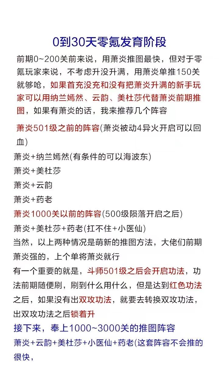 一、新手攻略主线任务 1、登录游戏后需要每天参加主线以及副本任务累积经验值。 2、挑战副本后有机会获得装备等物品奖励提升战斗力。 角色推荐 1、美杜莎:版本强势角色,适合PVP以及PVE模式战斗,输出伤害比较高。 2、萧熏儿:属于单体爆发输出高的角色对单能力强。 战斗技巧 1、包括PVP以及PVE两种模式,推荐玩家组队完成战斗。 2、后期尽量参与家族,绑定师徒关系可以快速升级。 二、角色强度排行 T