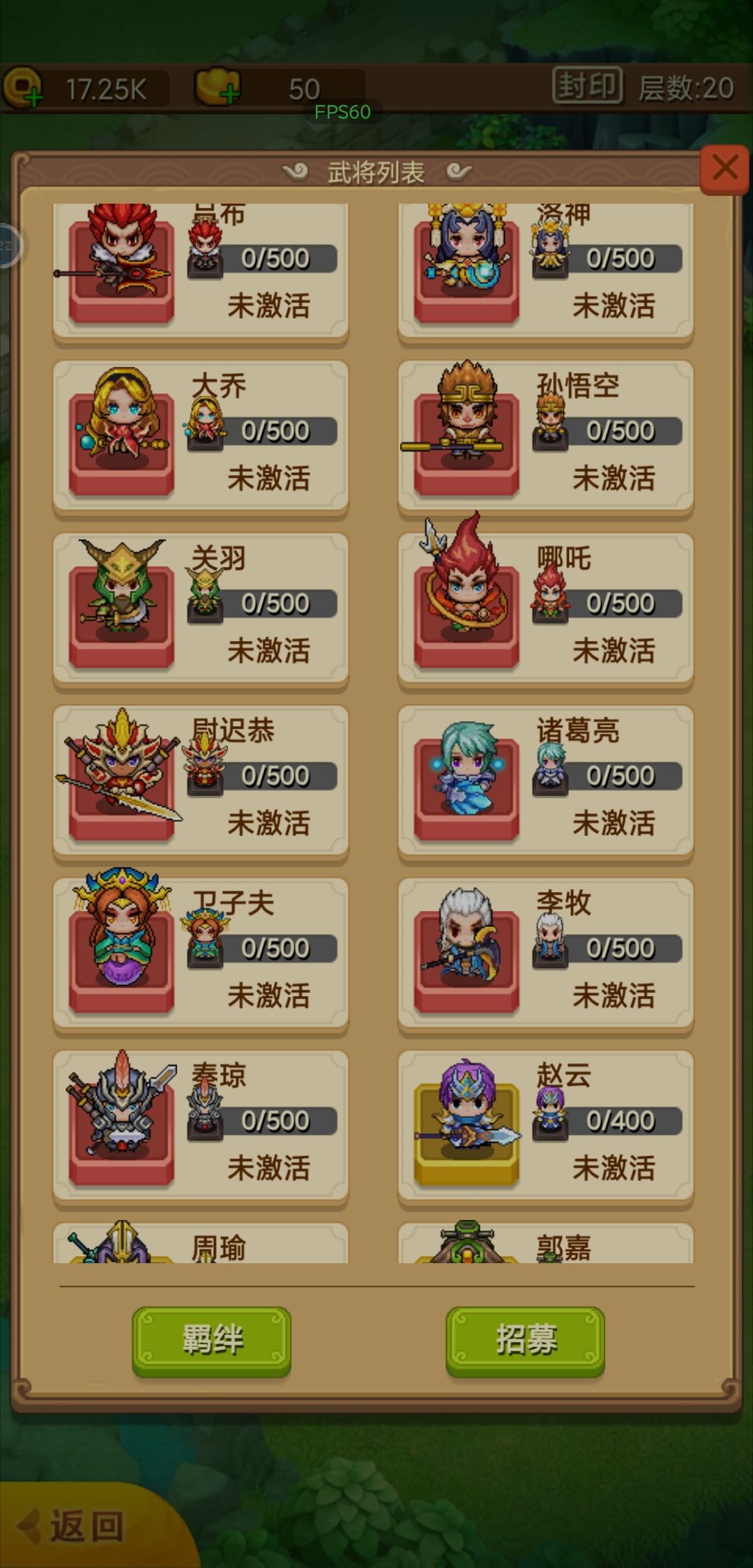 这是一款三国题材的爬塔游戏,麻雀虽小,五脏俱全。之前也玩过类似的游戏,这个新增了很多玩法,特别是升官玩法,好像到皇帝还可以转职。 装备锻造后品质好像会随机,但是等级提高了,随之提高强化上限。等级高了才是一切,品质就不用太讲究了。 武将获得途径有很多,遭遇战,无尽之塔,酒馆招募,和各种活动都可以获得碎片,碎片满了就可以激活武将了,多余的碎片用来升星武将,合理利用。感觉武将品质差别不是特别大,0氪玩家