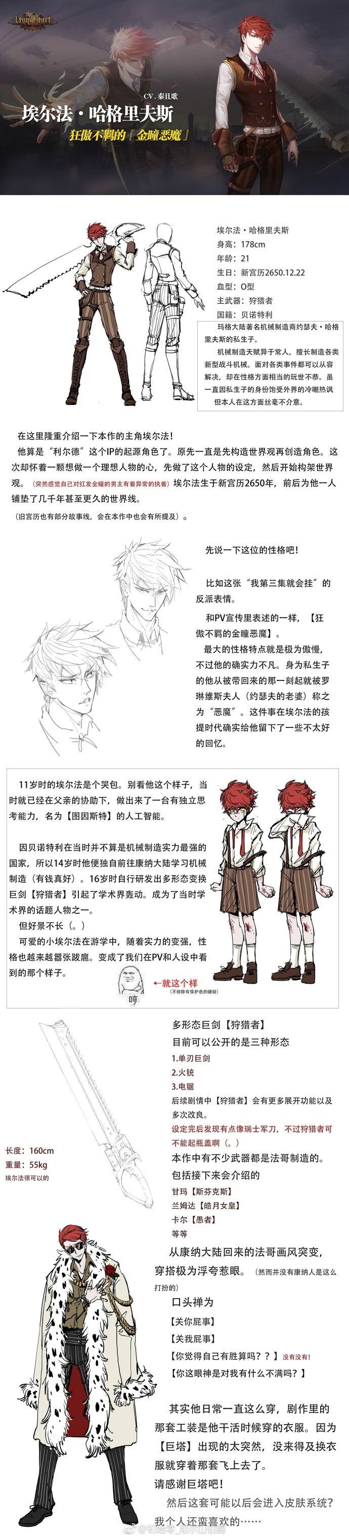 亲爱的taptap用户们,感谢大家对手游《利尔德之心》的关注~!《利尔德之心》将于2018年开启公测,剧情设定及人物介绍,苍岚互娱会陆续将在tap论坛与微博持续更新!狂傲不羁的『金瞳恶魔』,埃尔法·哈格里夫斯由人气声优秦且歌老师演绎========================================作为本作主人公的埃尔法,是玛格大陆著名机械制造商约瑟夫·哈格里夫斯的私生子。他